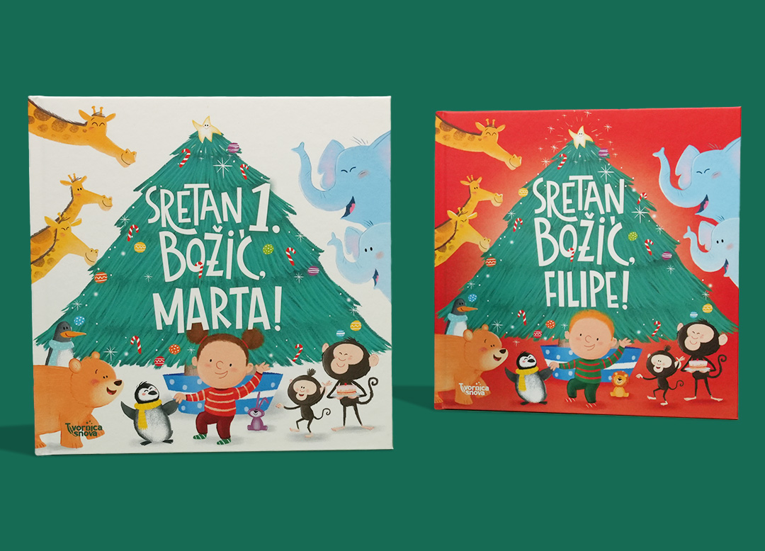 Personalizirana slikovnica “Sretan Božić!” u blagdanskom crvenom izdanju savršen je poklon za djecu koja već poznaju čaroliju blagdana. Kroz veselu i toplu priču o darivanju, dijete postaje glavni junak vlastite božićne avanture. Ako pak tražiš dar za bebin prvi Božić, odaberi posebno izdanje “Sretan 1. Božić” s nježnim, bijelim koricama – uspomenu koju će roditelji čuvati zauvijek.